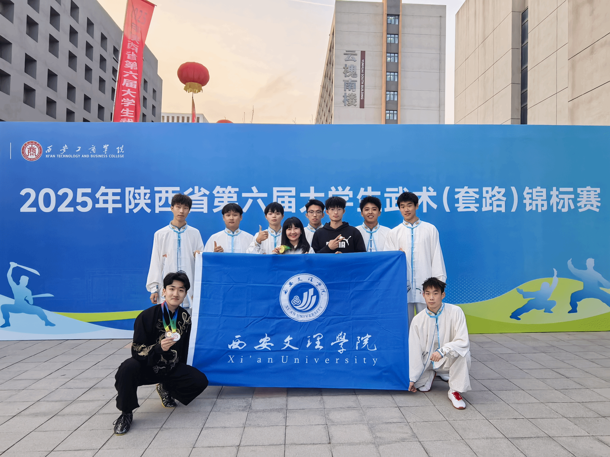 2025年12月19日至21日,陕西省第六届武术(套路)锦标赛在西安工商学院落下帷幕。我校武术队凭借硬核实力突出重围,再次展现了“文理武风”。本次赛事由陕西省学生体育协会主办,吸引全省36所高校的387名队员同台竞技。我校运动员在金洁老师的带领下以1金2银5铜、团体总分第六位的斐然战绩闪耀赛场,在36所参赛代表队中名列前茅!每一枚奖牌都凝结着队员们日夜磨砺的汗水,彰显着西文理学子坚韧不拔的意志与传承中华武魂的担当。