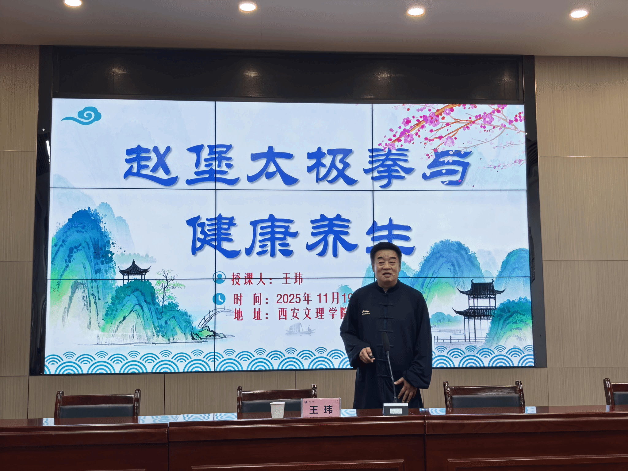 讲座中,王玮先生以多学科交叉视角,追溯赵堡太极拳传承脉络,解读“阴阳平衡”“内外合一”核心拳理,凸显“力”“意”与经脉贯通——以“意”领气血、“力”通经络,借契合人体结构的拳架优化代谢;王老师还现场示范经典套路,直观呈现练习要诀。结合全民健康需求,他阐释其亚健康干预价值,明确“以意驭力、经脉贯通”本质,为传统武术现代化转化与学术研究提供指引。